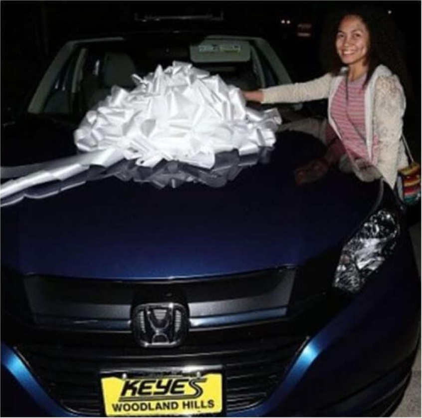 Chris Brown posted this picture of Jessica Roncalli, a former domestic violence victim, standing beside the brand new car that he gave her as a Christmas gift for Roncalli and her three children. Instagram/ chrisbrownofficial