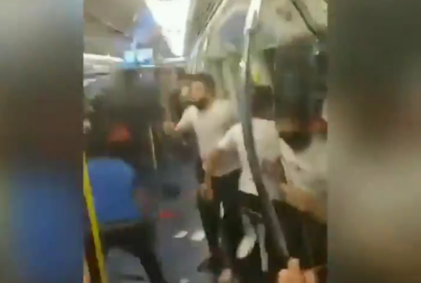 Footage shared on social media showed dozens of men wearing masks and white shirts attacking people inside the Yuen Long MTR station with rods and sticks.