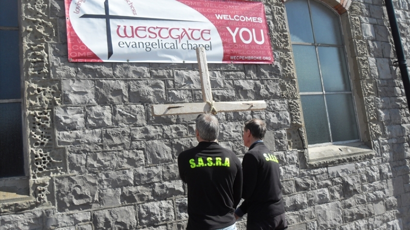 Following their highly successful walk around the Pembrokeshire coastal path last year two members of Westgate Evangelical Church Pembroke set out to carry a cross again on Good Friday, but their focus on this occasion was the work of SASRA (The Soldiers' and Airmen's Scripture Readers Association) and the often ignored cost of service in the Armed Forces.
