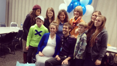 Jill shared a photo of the intimate baby shower, which was held at The Olive Garden, on her Instagram account (@jillmdillard). There was a single "It's a boy!" balloon in the photo, with Jill and the rest of the attendees looking up at Derick while he was speaking.