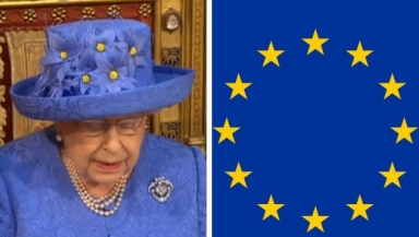 Meanwhile, social media users had some fun with the Queen's Speech today by likening the hat worn by the Queen to the flag of the European Union.