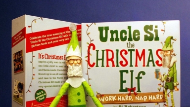 The book comes with an elf in Uncle Si's image, and the doll hijacked a Darth Vader display to communicate the Christmas story's message.