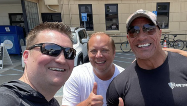 Dwayne "The Rock" Johnson has paid a surprise visit to a church-run homeless ministry in Los Angeles.