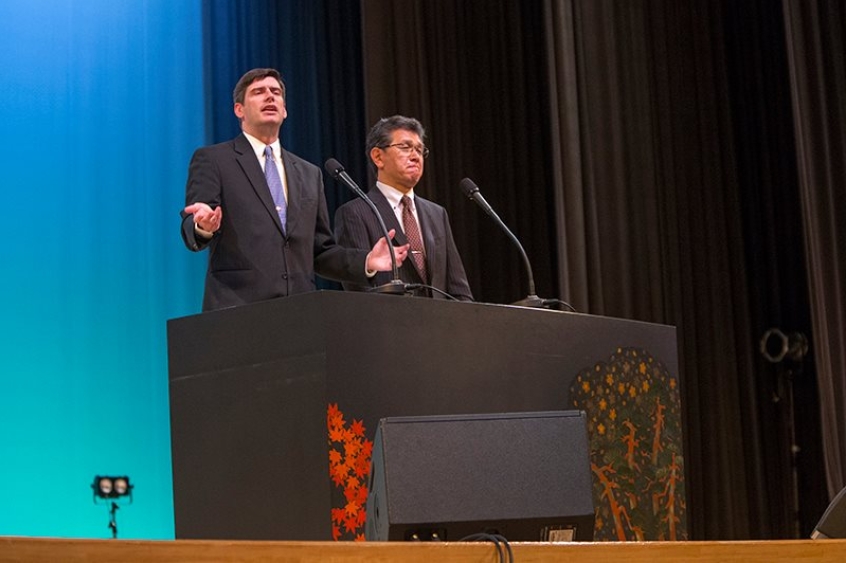 Seventy area churches -- including 26 from the host city of Koriyama, and 44 from other locations in Fukushima prefecture -- partnered together with the Billy Graham Evangelistic Association to host the event inside the College Memorial Hall on the campus of Koriyama Women's University.