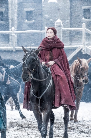 Several photos from the North and the Wall were also released. However, none of them show proof that Jon Snow (Kit Harington) is still alive. The photos only reveal that Melisandre (Carice van Houten) arrived at the Wall to face the Night's Watch. Other photos showed Sansa Stark (Sophie Turner) and Theon Greyjoy/Reek (Alfie Allen) talking in the snow.