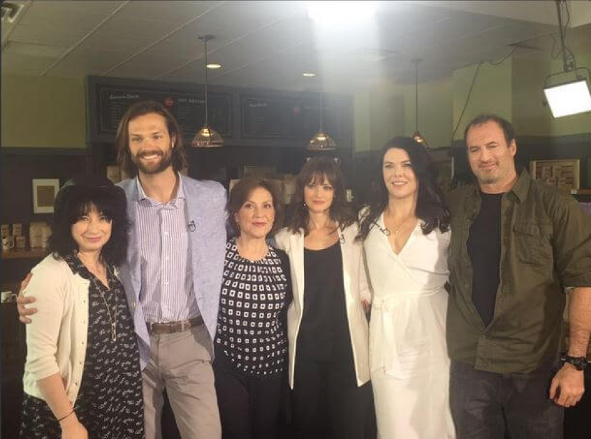Lauren Graham and Alexis Bledel, who played the mother-daughter team of Lorelai and Rory Gilmore, were joined by three of the men who played Rory's love interests — Jared Padelecki (who played Dean Forrester), Milo Ventimiglia (who played Jess Mariano), and Matt Czuchry (Logan Huntzberger). They were joined by Keiko Agena (Lane Kim), Liza Weil (Paris Geller), Scott Patterson (Luke Danes), Danny Strong (Doyle McMaster), Kelly Bishop (Emily Gilmore), and show creator Amy Sherman-Palladino.