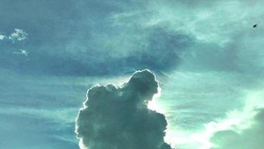A mountainous cloud formation was likened to an image of God standing majestically over the earth, and a smaller formation to the right was interpreted as an angel, bowing slightly, and perhaps playing a trumpet.