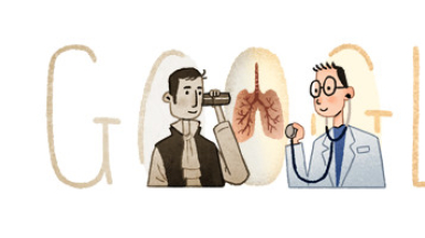 Google's masthead today shows two figures on either side of a pair of lungs. One of them is a modern doctor with a stethoscope and the other is an antique gentleman holding a sort of tube to his ear.