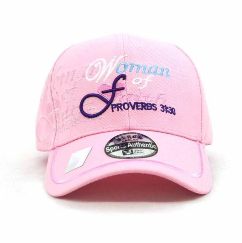 There's quite a slew of pink-themed hats, including some quite extraordinary "princess" designs which talk about the wearer being a "daughter of the King". This one references Proverbs 31 (obvs) and declares that this person is a "woman of faith". Strangely I can't find a male equivalent, although if they made one, I'm sure it'd come splattered with blood and covered in wood shavings.