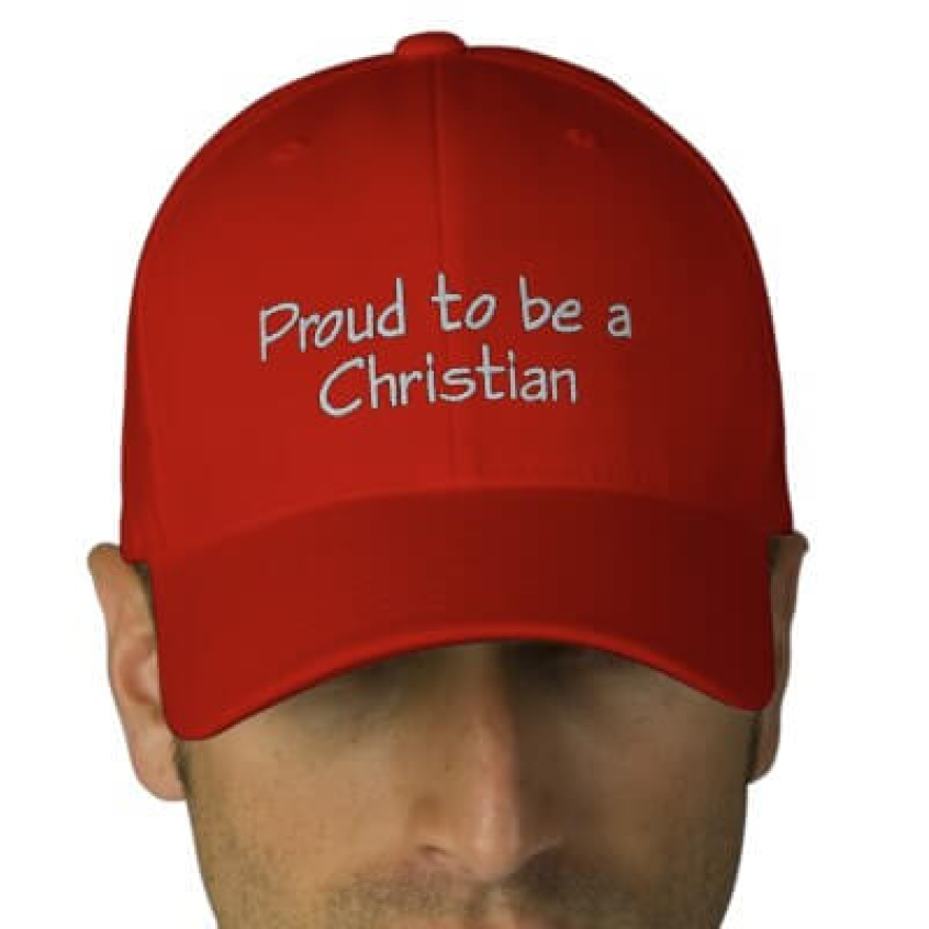 A fairly new innovation one would assume, there's a wide range of hats available bearing the arabic 'nazarene' symbol which has been popularised as Christians support their persecuted brethren around the world. For me though, this variant is a bit of a mis-step; it shows the same symbol cut out of the US flag. Whether it's suggesting American support for Christians overseas, or that the US church is facing persecution is unclear; either way it feels about as culturally sensitive as a box of Freedom Fries.