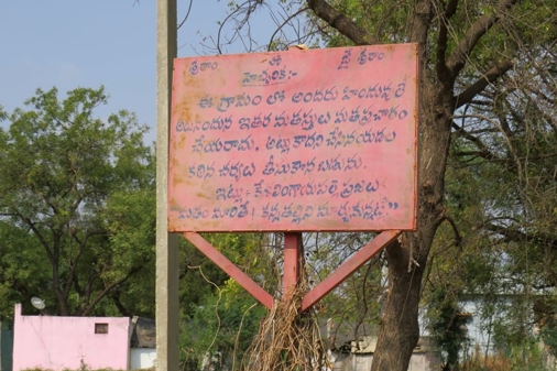 Three years later, during the festival commemorating Ram's birth, Bandi Venkatramana, a local farmer, erected an urgent red-and-white sign, known here as a saffron board, at the entrance to the quiet village.