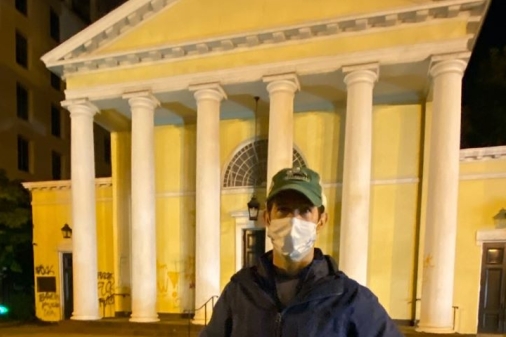 Given the recent media coverage of the protests, you may be concerned about our beloved church and parish house. We are fortunate that the damage to the buildings is limited. There is some exterior graffiti, and the protective glass over one of the more modern stained-glass windows on the north side of the narthex has been broken (the stained glass itself is unharmed). Thankfully, there is no damage inside either of the buildings. This morning we secured, as best we could, our most valuable items.