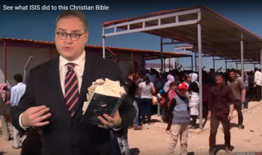 Going through the rubble inside the church, Iraqi soldiers found a desecrated Bible written in Aramaic, the language of Jesus and the Chaldean Christians who live in that city.