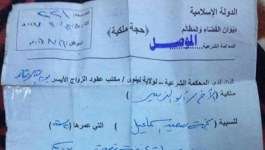 A receipt for an Islamic State jihadi's purchase of a 20-year-old woman from another man has been circulating online and provides insight into how the terrorists sold women and girls in the now liberated city of Mosul.