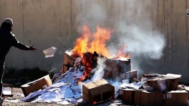 The video was titled "Diwan of education destroys Christian instruction books in Mosul". The Diwan Al-Hisbah is ISIS's morality police, responsible for enforcing the group's laws.