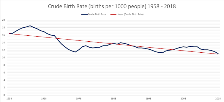 Crude Birth Rate for England and Wales: 1958 - 2018. (Office for National Statistics)