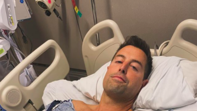 "Just wanted to give you an update on Jeremy," Adrienne Camp captioned a photo of her husband giving the thumbs-up sign in a hospital bed posted Monday afternoon.