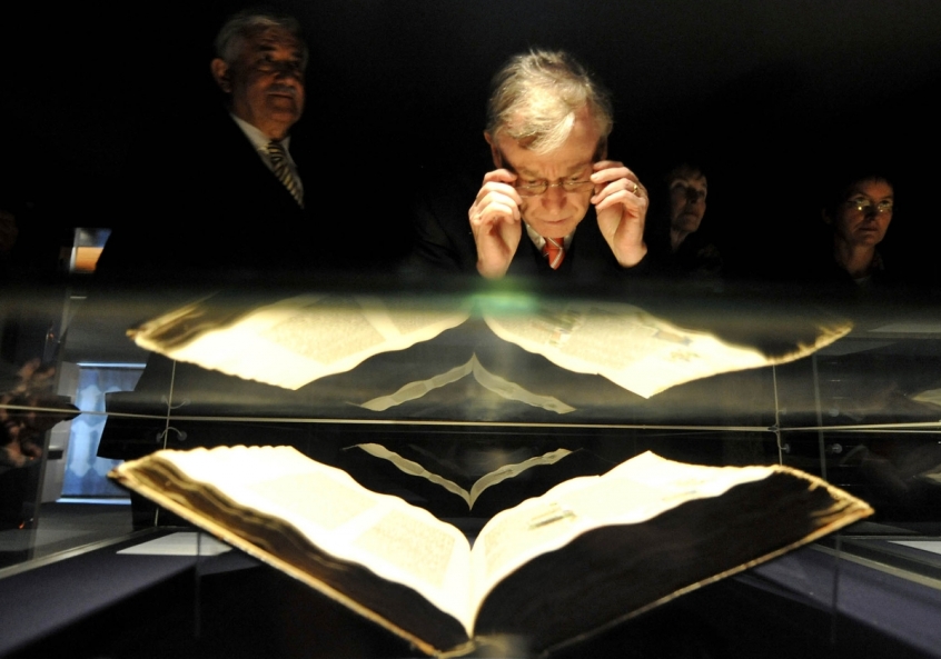 Gutenberg developed a simple idea. Cut letters from small pieces of metal, run the pieces over with ink and print the letters on paper. 'Moveable type' meant those letters could be rearranged to print various texts quickly and uniformly. Repeat the process, print several pages, and soon you have a book. Before this idea came along, the usual way to copy something was to do it by hand – a process that was tedious, time consuming, and prone to scribal errors. Books and pamphlets were also made by cutting letters out of wood, and hundreds of years before Gutenberg Chinese innovators had printed using letters made of baked clay. But Gutenberg's printing press in Mainz, Germany, was the real ancestor of printing today. In August 1456 the press produced the world's first printed Bible, the Gutenberg Bible. It was the Latin Vulgate version, an ornate and luxurious edition.