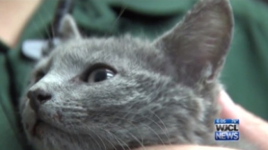 Construction workers witnessed the kitten falling from the Diamond Causeway bridge and into the Intracoastal Waterway, and alerted the Savannah-Chatham Marine Patrol. The kitten was rescued by the Marine Patrol and Animal Control.