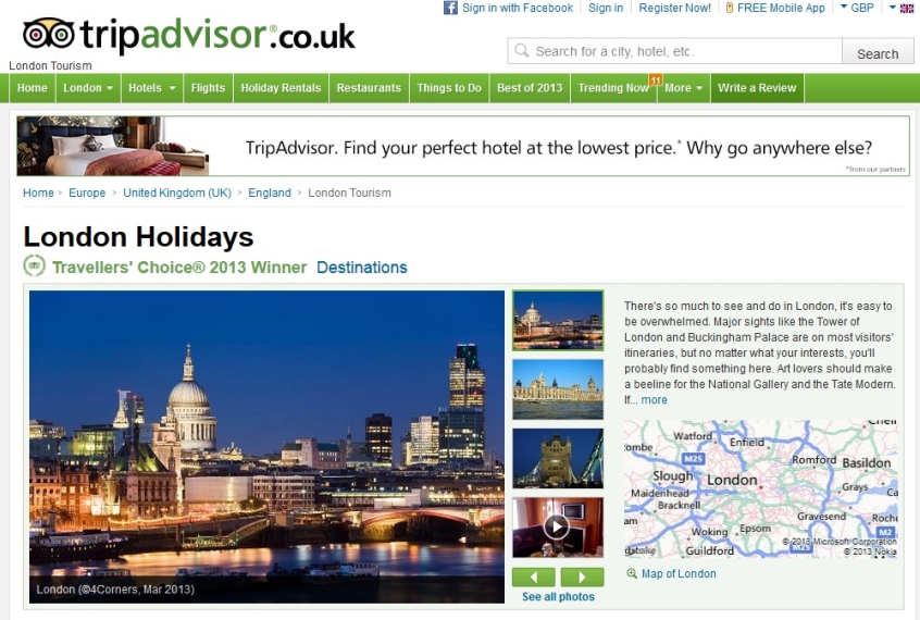 With 459,406 reviews in 2013, the capital of England is way ahead of its competitors, the nearest of which are Rome, with 365,867 reviews, and Paris, which has been reviewed 318,418 times in the past year, TripAdvisor has revealed.