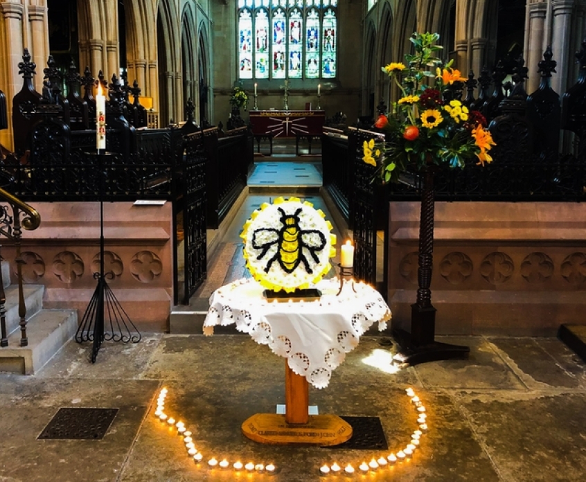 The church is situated in St Ann's Square, where floral tributes have been left to mark the anniversary.