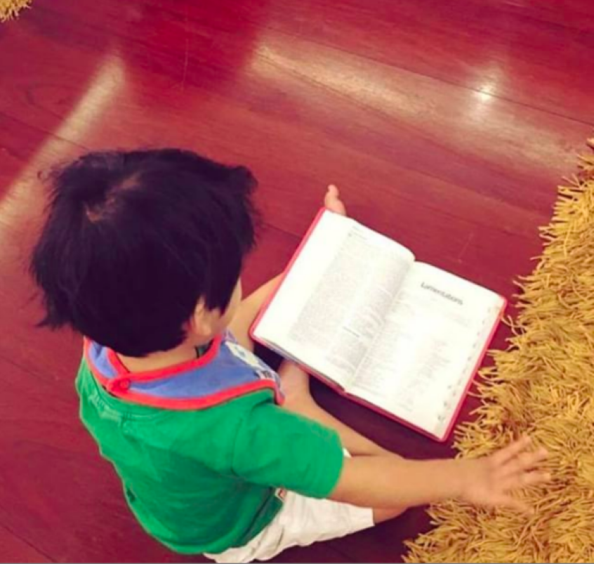 On his Instagram account (@mannypacquiao), the retired Christian boxer posted a photo of his son reading the Bible and captioned it, "Lord, my wife and I pray that our son will grow up to love the Word of God and obey your commandments."