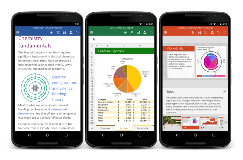 The release follows Microsoft's launch of the Office Suite for Android-based tablets back in January, and the subsequent release of productivity apps for Apple users. Mostly identical to its iOS counterpart, the full apps on Android let users make quick edits and drafts using their smartphones.