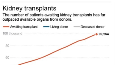 "Unfortunately, we don't have enough kidneys for everyone and the number of people in need is growing," he said. "Depending on where a patient lives, he or she can be on a waiting list for anywhere from two to eight years and would receive dialysis in the meantime."