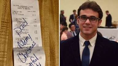 "Yesterday I went to Olive Garden restaurant to have dinner with nice families. We were a group of 7 adults and 5 children," he wrote."Everyone in the restaurant was knowing that we were Arabs Muslims on the table coz of the language and the ladies were having scarves over their head (Hijab). After finishing we asked for the receipts and the waitress came to us with that receipt in the picture [he posted on his Facebook page]."