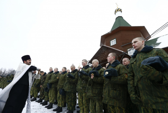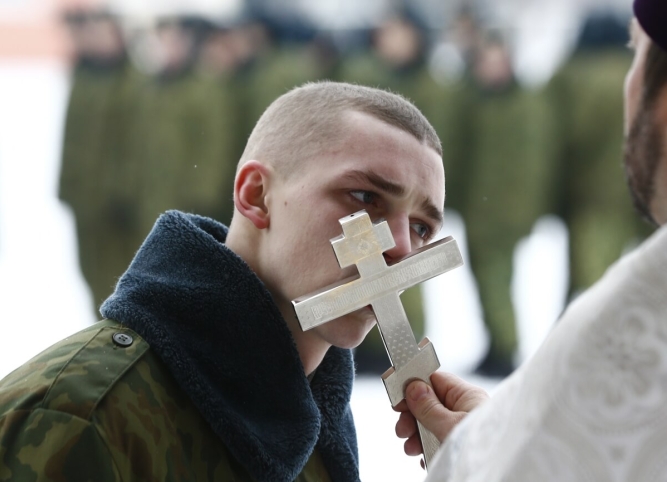 Servicemen of the Belarussian Interior Ministry's special force recieved a blessing at a military base in Minsk, Belarus:
