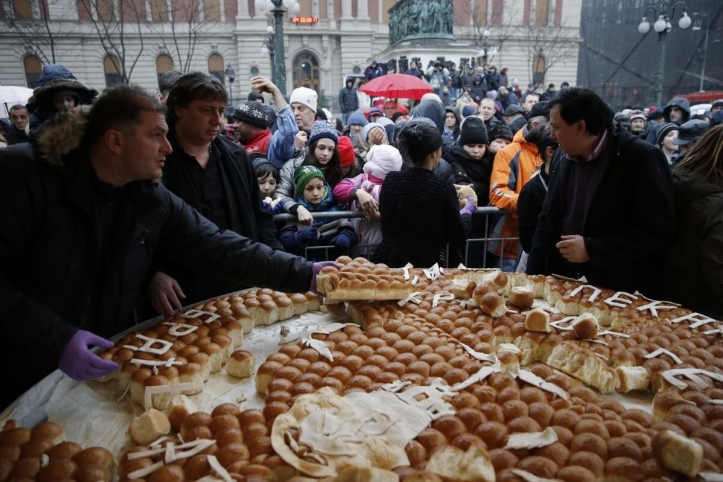 No Turkey here. Serbian Christians today queued up to recieve a piece of traditional Christmas bread (and don't look too happy about it...)