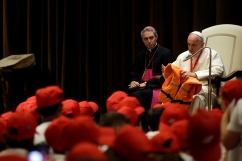 Greg Burke, the Director of the Holy See press office, said: "Both adults and children had an opportunity to speak with Pope Francis about the beginning of their lives in Italy. The children presented the Holy Father with a collection of their drawings, and the Pope presented them with toys and other gifts."