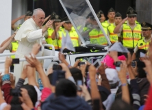 Francis flew into Bolivia from Quito, Ecuador, where he showed his sense of humour during the last few hours of his trip to that country. In Ecuador he drew crowds totaling nearly 2 million people.
