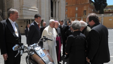 He was originally given the 1,585cc Dyna Super Glide bike in June 2013 to mark the 110th anniversary of Harley-Davidson, but is better known for riding around in a 30-year-old Renault 4 after famously eschewing the more comfortable 'Popemobile' – a Mercedes-Benz.