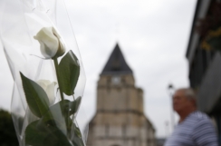 Hundreds of people were gathered inside the 13th century Gothic cathedral in Rouen for the funeral Mass for the priest, who was taken hostage along with three nuns and two other fellow worshippers.