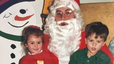 Willie is known for his trademark beard, and in the photo, he is seen sporting the beard—but in a different hue since he is dressed up as Santa Claus!