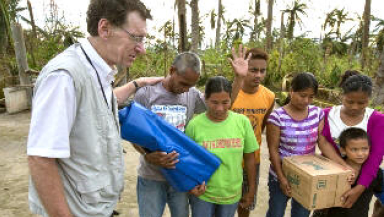 Three of the Samaritan's Purse DART members currently in the Philippines are from the UK, including Peter Ivermee from Dorset, who was helping distribute tarpaulin and water supplies on Bantayan Island this week.
