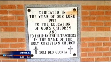 The plaque outside Mt Peak Elementary School reads: "Dedicated in the year of our Lord 1997 to the education of God's children and to their faithful teachers in the name of the holy Christian church. Soli Deo Gloria." A similar plaque is outside of Longbranch Elementary School.