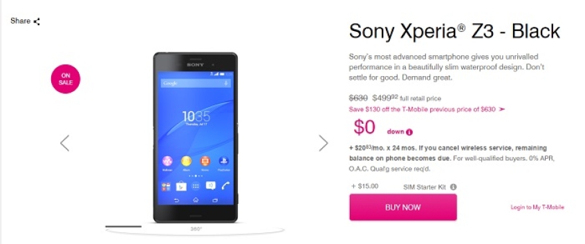 Barely a month after major carrier T-Mobile dropped the Sony Xperia Z3 from its products line up, the device is back on the company's shelves again.
