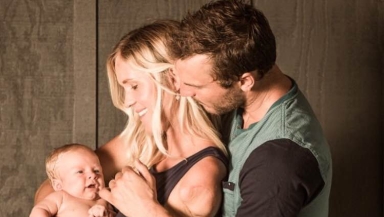On her Instagram page (@bethanyhamilton), the "Soul Surfer" shared another family photo and captioned it: "Well most of us have heard how tough the first two months with a newborn are especially the first child. Adam and I can attest to that! It's been a huge challenge these last two months. Good thing the sweet moments outweigh the tough. I can just sit there and admire how adorable our lil guy is and be filled with love for him..."