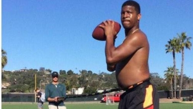 The 2015 no. 1 pick's weight has been a hot topic before the draft and a photo of him looking like he was out of shape while working out on the field surfaced last February; but his trainer told The Big Lead that Winston was wearing a leash around his waist at the time and that is why he looked overweight, CBS Sports reported.