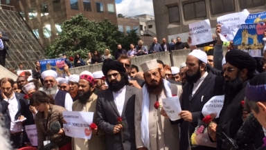 Also speaking at the vigil was Rabbi Laura Janner-Klausner, Senior Rabbi to Reform Judaism. She addressed the imams and the public, saying: 'We all weep for those we've lost. British Jews stand with our Muslim brothers and sisters when wickedness has attacked London. Now's the time for the very leadership that you are modelling as Imams – modelling for Britain today, not just for Muslims, but for all British people. Judaism and Islam are linked by a great prophet, Moses...Moses knew that the most influential leadership was not through grand presentations or speeches, but by meeting individuals face-to-face, in Hebrew, panim-el-panim, in Arabic wajeh le wajeh, building connections in the hearts of others. That is our work, to turn souls away from wickedness, and we are all together in that holy task.'
