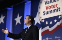 Cruz, 44, is a tea party favourite and has a large support base among evangelical Christians. He was given a warm reception at last year's Values Voter Summit; the conference, which is hosted by the Family Research Council, is usually seen as an early indicator of conservative support for presidential candidates, and Cruz won the most support (25 per cent) in the poll at the end of the weekend.