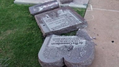 The six-foot-tall monument, erected in 2012, was recently the subject of a lawsuit filed by the American Civil Liberties Union. A judge decided last month that the monument does not violate the state's constitution. The ACLU appealed the decision, but did not condone the monument's desecration.