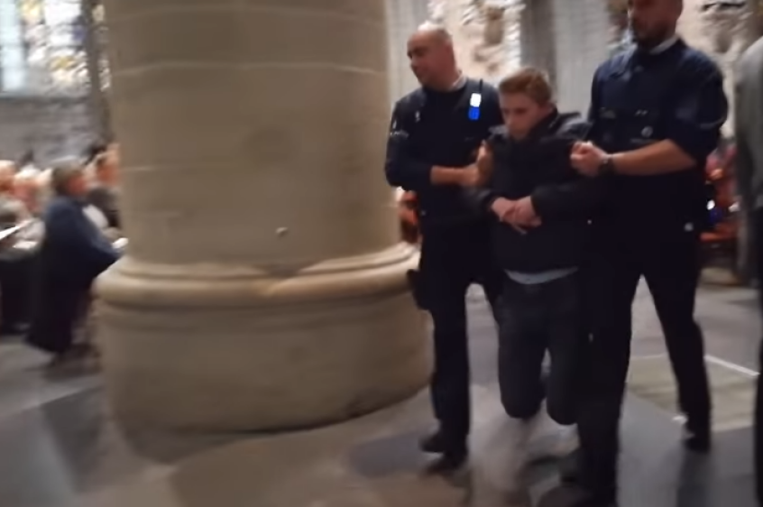 But the service was interrupted by about 12 young Catholics, who linked arms whilst reciting the rosary during the celebration, according to Catholic News Agency. They were eventually removed from the cathedral by police, as Youtube footage shows.