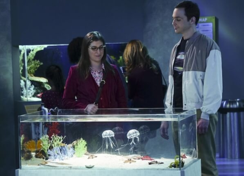 Sheldon (Jim Parsons) and Amy (Mayim Bialik) hangs out at the aquarium in 'The Platonic Permutation' episode of 'The Big Bang Theory' season 9. cbs.com/shows/big_bang_theory