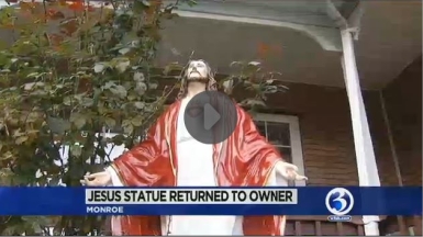 Midge Saglimbene owns a religious gift shop in Connecticut. He says a faded 4ft statue of Christ was stolen, only to reappear with a fresh coat of paint.
