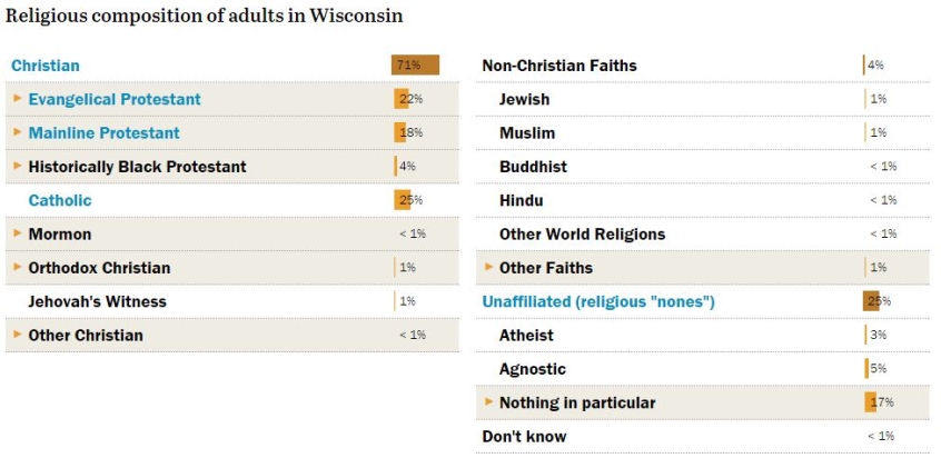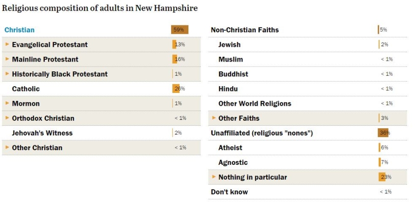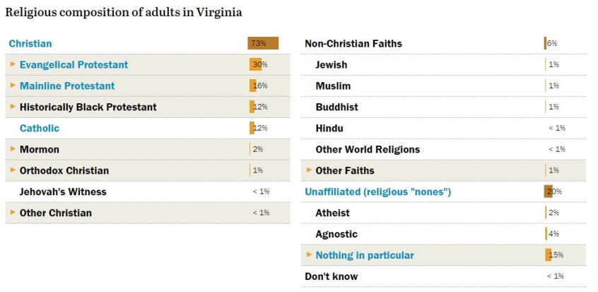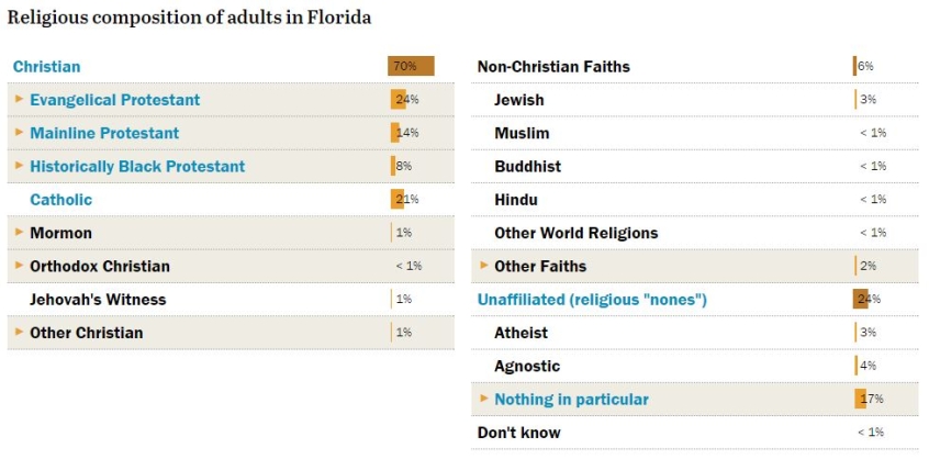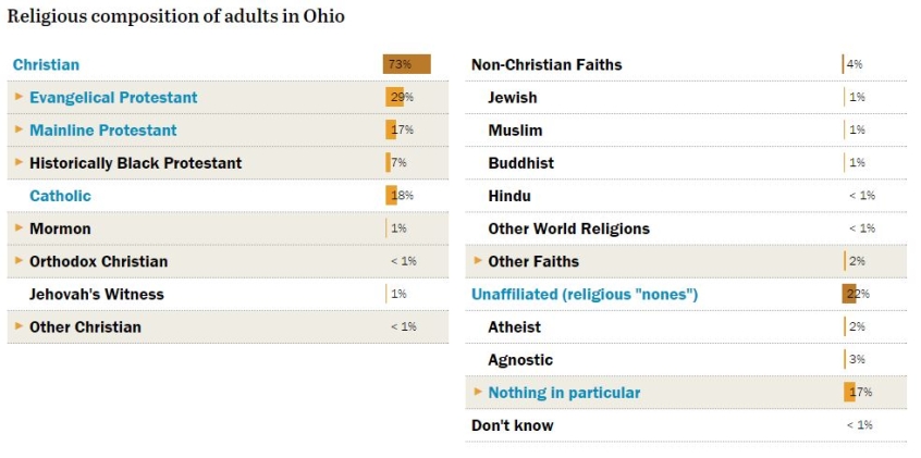 Christian Today has broken down the demographics across 11 states based on figures from Pew Research Center.