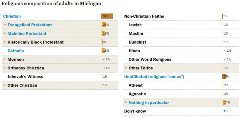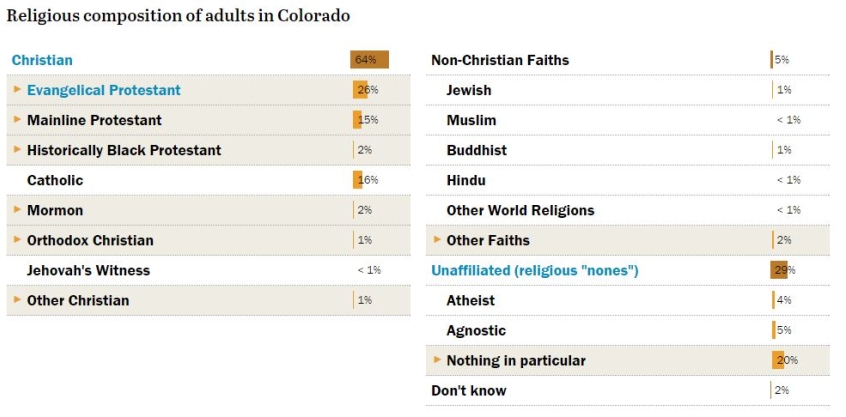 With comparatively fewer Christians in Colarado, Clinton could see this as a safer win for her. But with nine electoral college votes it is not as crucial Florida, Pennsylvania and Michigan, all of which top 70 per cent Christian population.