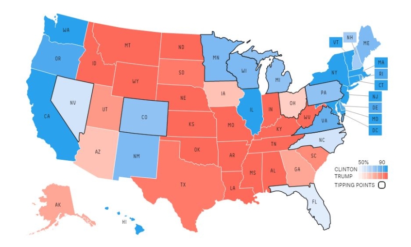 North Carolina will be crucial on election night. With 15 seats it has significant weight and the well respected site fivethirtyeight.com puts Clinton's chances here at just 55 per cent. She is at 71 per cent nationally according to the site.